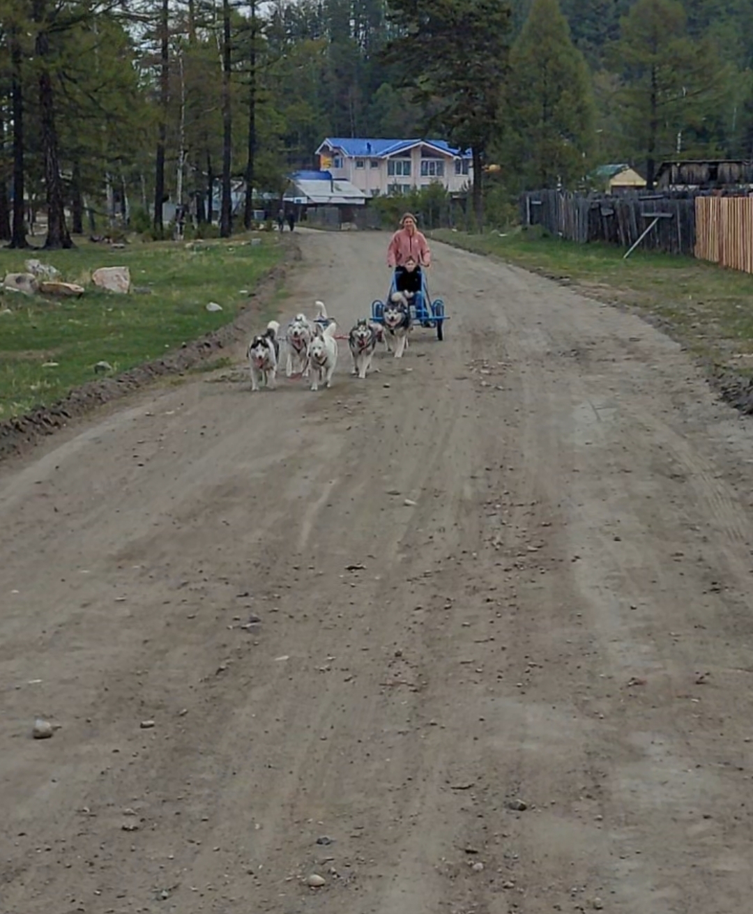 Am Ende fuhr Victoria das Kind mit dem Schlitten. Ich führte die Hunde und Andrey unterhielt sich mit dem Vater. Dieser war anscheinend zufrieden. Genau so wie Andrey. Der uns unbedingt zum Schaschlik einladen wollte.